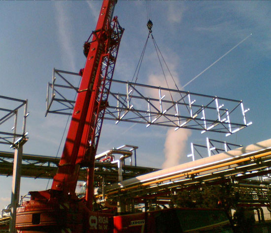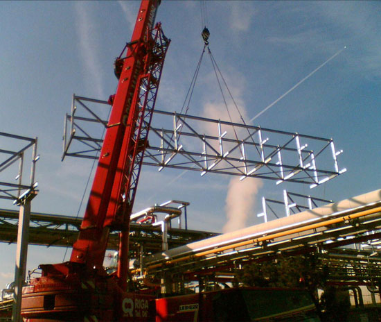 Die zentrale, oberirdische, infrastrukturelle Konstruktion ist die Rohrbrücke. Die Rohrbrücke ermöglicht eine kostengünstige Trassenverlegung verschiedenster Leitungssystem in unmittelbarer Nähe zueinander.